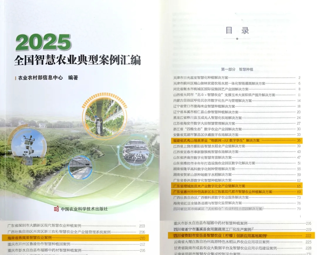 近日,农业农村部信息中心组织编著的《2025全国智慧农业典型案例汇编》正式出版,在74项智慧种植典型案例中,广州赛通科技有限公司深度参与其中5项不同场景的典型案例建设: